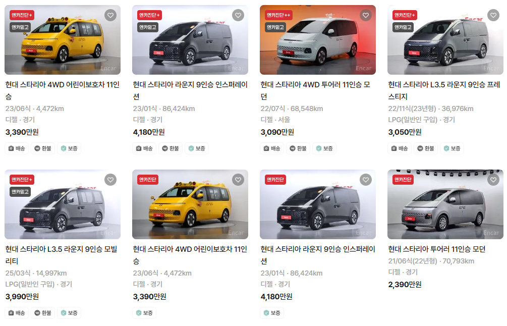 스타리아의 중고차 시세 가격표를 총정리해 보겠습니다. 2025년 8월 기준으로 스타리아 중고차 가격과 시세 정보이니 가까운 시일 내에 중고차 구매를 하실 분들은 참고해 주세요.