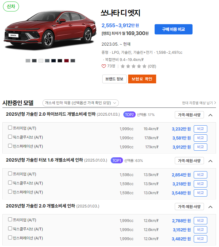 2025 쏘나타는 가격, 연비, 제원, 유지비 등 다양한 측면에서 매력적인 차량입니다. 해당 차량 구매에 고민 중이시라면 위 정보를 참고해보시길 바랍니다.