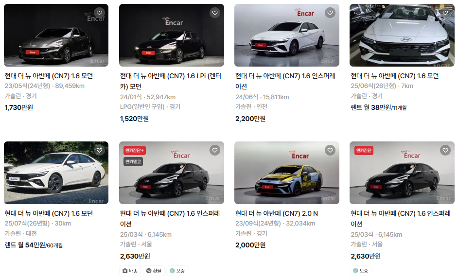 아반떼의 중고차 시세 가격표를 총정리해 보겠습니다. 2025년 8월 기준으로 아반떼 중고차 가격과 시세 정보이니 가까운 시일 내에 중고차 구매를 하실 분들은 참고해 주세요.