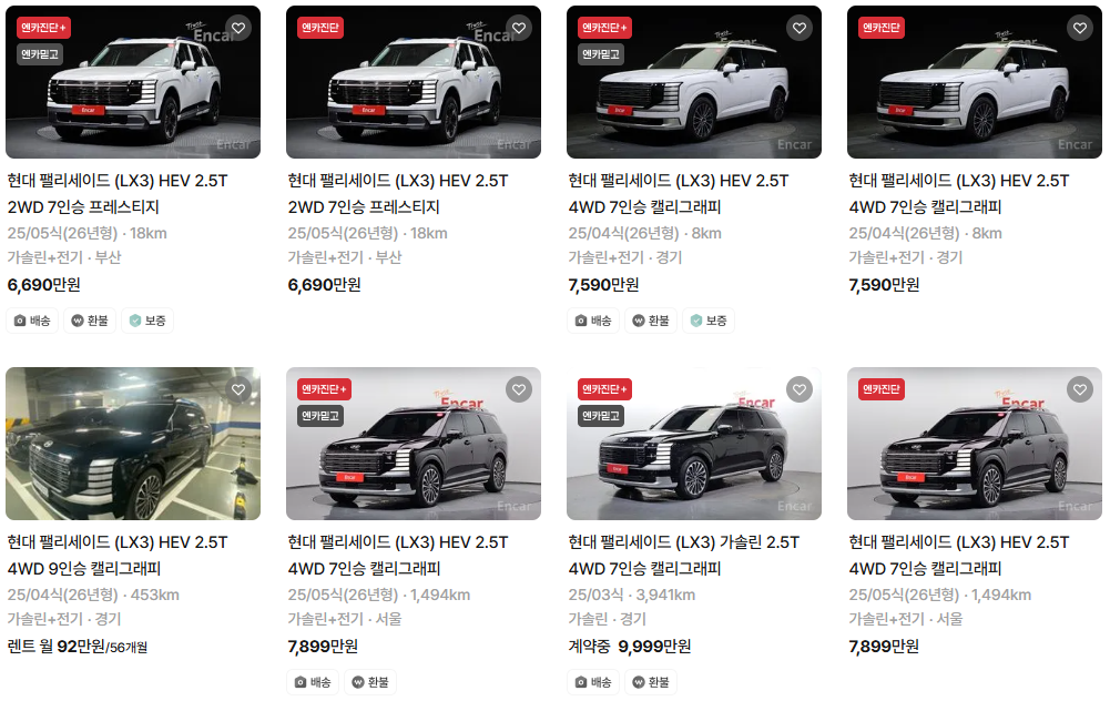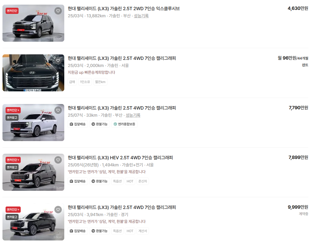 👇 👇 팰리세이드 경쟁차량 중고차 정보 👇 👇