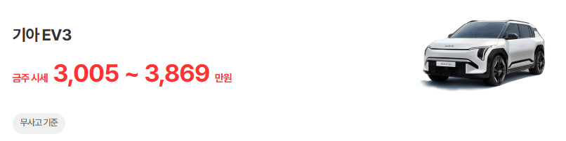 EV3는 2024 ~ 2025년식 EV3 모델이며, 중고차 시세는 3005 ~ 3869만 원입니다. 아래는 현재 중고차시장에 매물로 나와있는 EV3의 중고차시세와 가격표입니다.